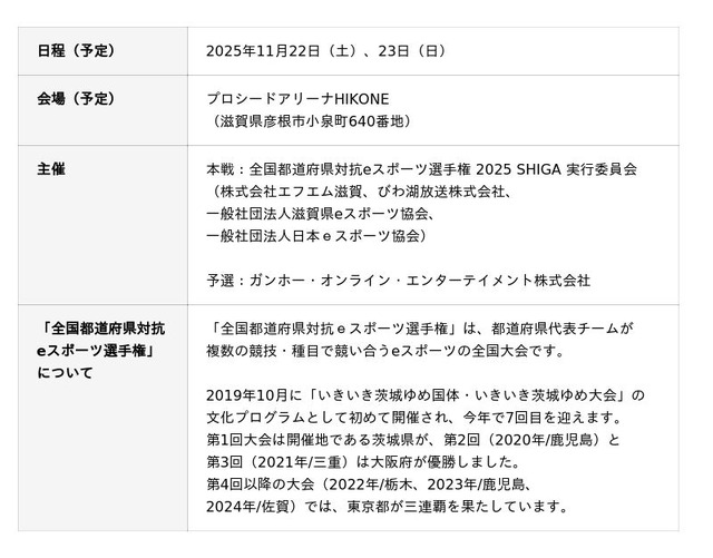 「全国都道府県対抗eスポーツ選手権 2025 SHIGA」概要