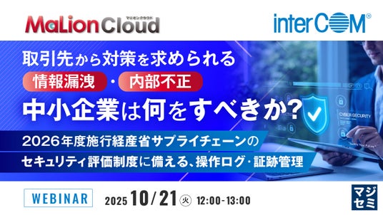 本セミナーでは、サプライチェーン評価制度に備える中小企業向けに、操作ログの取得から証跡提示までを一元的に支援する「MaLionCloud」を活用した具体的な対策を解説します。クラウド型で導入・運用の負担を最小限に抑えつつ、必要な証跡を自動的に蓄積できる仕組みにより、限られたリソースでも評価制度が求める水準に確実に準拠する方法を提示します。さらに、取引先からの監査や契約更新の際に即座に証跡を提示できることで、契約維持と信頼確保を実現し、安心してビジネスを継続できる体制を整えられます。