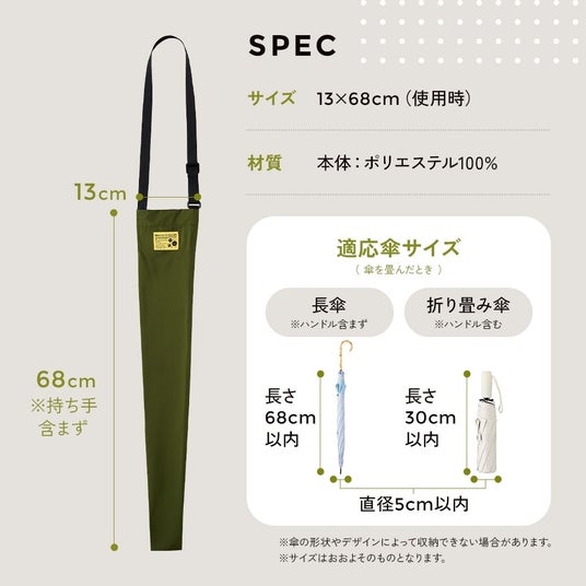 ■適応サイズ:長傘/長さ68cm以内(ハンドル含まず)、直径(約)5cm以内