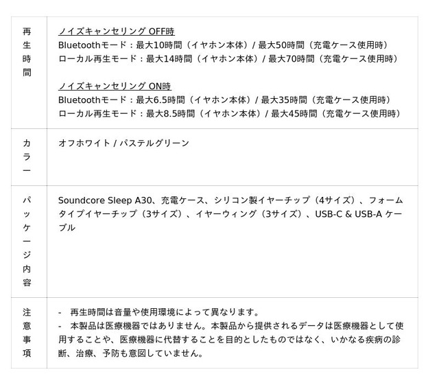 米国・日本・欧州を中心にデジタル関連製品でトップクラスの販売実績を誇るAnkerグループの日本法人、アンカー・ジャパン株式会社(本社:東京都千代田区、代表取締役CEO:猿渡歩)は、オーディオブランド「Soundcore」において、睡眠特化型の完全ワイヤレスイヤホン「Soundcore Sleep A30」を2025年9月25日(木)よりAnker Japan 公式オンラインストア(製品ページ:https://www.ankerjapan.com/pages/soundcore-sleep-series)、一部直営店 Anker Store、総合オンラインストアAmazon.co.jp(製品ページ:https://amzn.to/4nyQZfH?m=A2Q9OW6QVJC5XE)、楽天市場(製品ページ:https://item.rakuten.co.jp/anker/d1301/)および一部家電量販店等において販売を開始いたします。