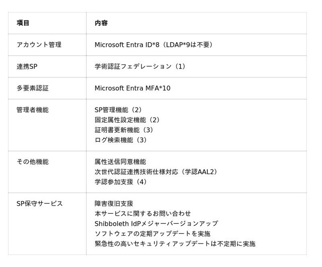 (1)学認以外のSAML・ OIDC(OpenID Connect)対応SPはMicrosoft Entra IDで認証することを推奨。レガシーSPについては非対応