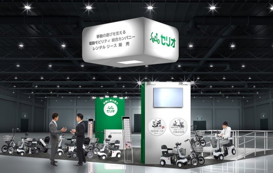 ブースでは、電動アシスト付4輪自転車やハンドル形電動車いす(シニアカー)、