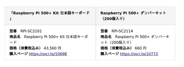 ▶︎ 「Raspberry Pi(R) 500+」の販売情報