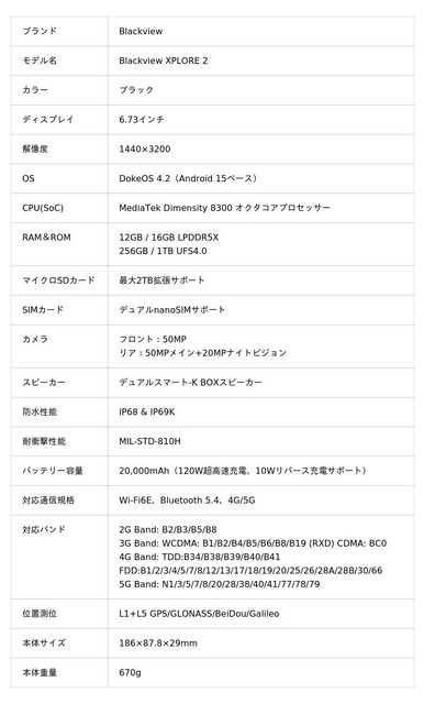 Blackview XPLORE 2の詳細スペック・仕様