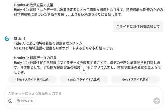 提案構成やデザインまでAIが生成。必要なのは「何を伝えるか」だけで、PowerPoint操作はほぼ不要。資料作成のために費やしていた時間を、顧客対応や戦略立案に再配分できます。