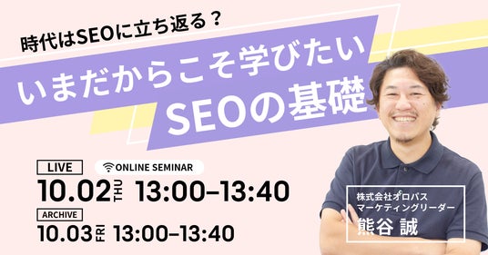 SEOツール「パスカル」の開発・提供を行う株式会社オロパスは、2025年10月2日(木)に「 時代はSEOに立ち返る?いまだからこそ学びたいSEOの基礎」をテーマに無料ウェビナーを開催いたします。