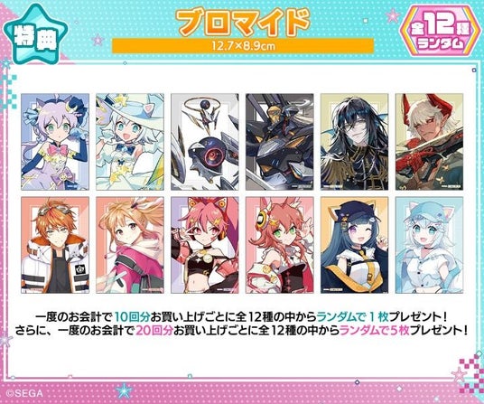 一度のお会計で10回分ご購入ごとに特典ブロマイド(全12種)の中からランダムで1枚、20回分ご購入ごとにランダムで5枚プレゼント!