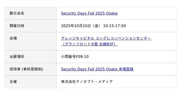 ▶ 「Security Days Fall 2025 Osaka」特設サイトはこちら