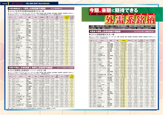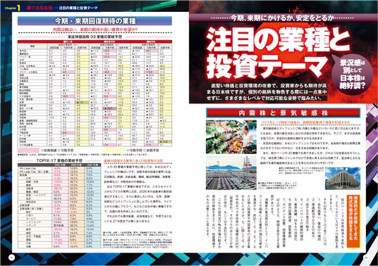 巻頭では、現在から2026、2027年までの実績、予測、コンセンサスで、ゆるやかに成長するものと景気敏感株を特集。来期、来々期に業績回復する銘柄を狙うか、米関税問題や世界情勢に関係なく、業績が衰えない安全な銘柄を狙うか。業界セクターと実際の銘柄、具体的なテーマ株で考えていきます。