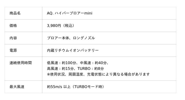 「AQ. ハイパーブロアーmini」専用のオプションパーツセットで、用途に応じて2通りの使い分けが可能です。