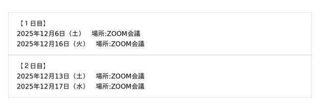 ■開催日程 (御受講の方は1日目と2日目両方をご予約下さい。)