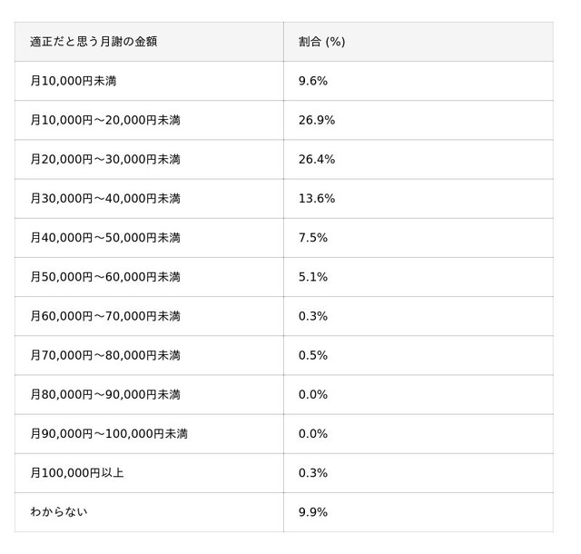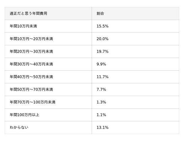 特に注目すべきは、その内訳です。最も多くの支持を集めたのが「年間10万円~20万円未満」(20.0%)であり、次いで「年間20万円~30万円未満」(19.7%)が続きました。