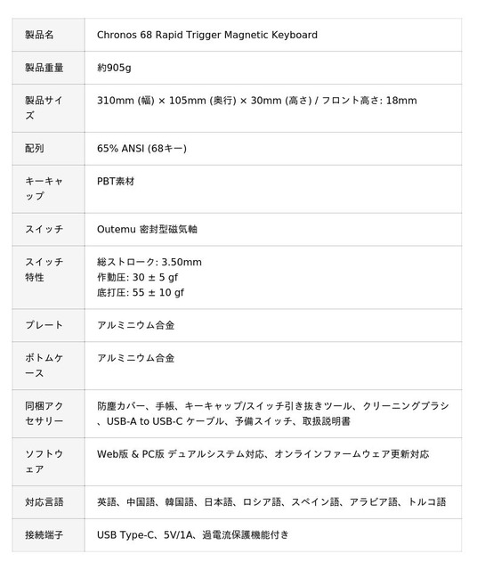 「Chronos 68 Rapid Trigger Magnetic Keyboard」 製品概要