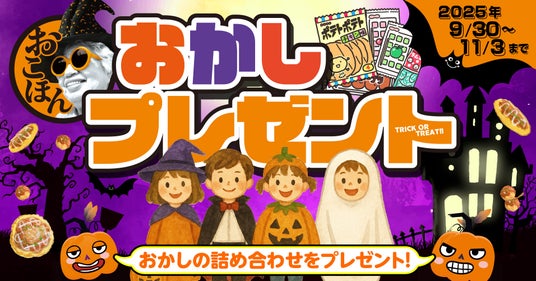 株式会社物語コーポレーション(本社:愛知県豊橋市/代表取締役社長:加藤 央之)が、全国20店舗展開中の『お好み焼本舗』(以下、おこほん)は、2025年9月30日(火)から2025年11月3日(月)まで「ハロウィンお菓子プレゼント」を実施します。公式アプリの専用クーポンをご提示で、小学生以下のお子さまに「お菓子詰め合わせ」をプレゼントいたします。