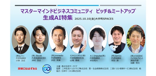 株式会社immedio(本社:東京都港区、代表取締役:浜田 英揮、以下 immedio)は、2025年10月10日(金)18:00より、SPACES大手町にて開催される「マスターマインドビジネスコミュニティ ピッチ&ミートアップ 生成AI特集」に登壇します。