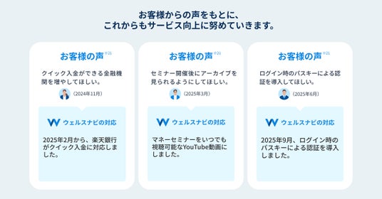 ※7 2025年7月13日に実施したアンケートでの質問「ウェルスナビを利用してよかったことがありましたら教えてください。」に対する回答より。個人の投資体験談であり、将来の運用成果等を示唆または保証するものではありません。投資に関する決定は、お客様ご自身のご判断と責任のもとに行っていただきますようお願いいたします。