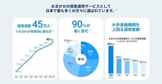 ※2 2025年6月30日時点の運用者数(1万人未満は切り捨て)。「運用者」とは1円以上の預かり資産がある顧客を指す。