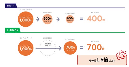 また、広告から友だち追加までの導線が圧倒的にスムーズになり、CVR( 友だち追加率)を平均1.5倍以上の改善が実現可能となっています。