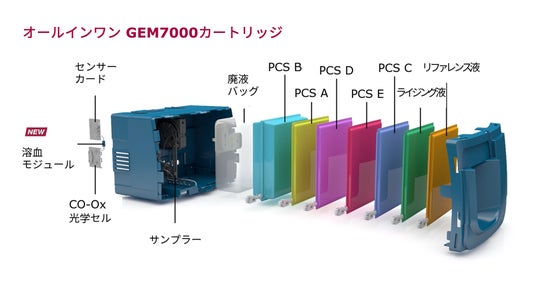 血液ガス検査に必要なすべてのコンポーネントを1つのカートリッジに収納