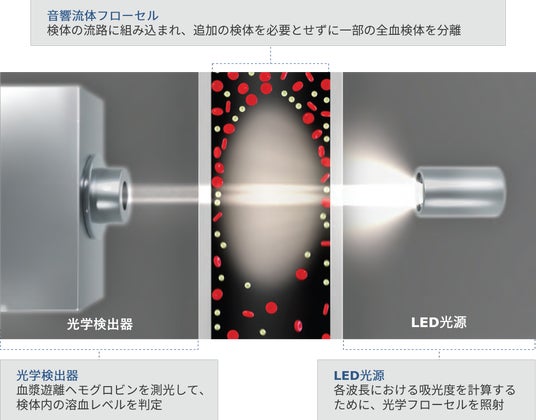 ・ 全血検体の光度測定に基づく溶血の検出を実現