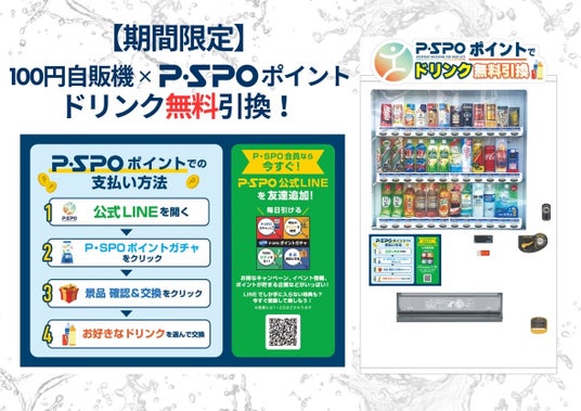 三福グループのベンダー事業を担う 株式会社エヌケイワイ(本社:愛媛県松山市)は、P・SPOと連携し、P・SPO公式LINEで貯めたポイントを自販機ドリンクと交換できるサービスを提供しています。