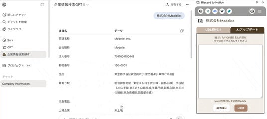 そこで株式会社Modelistは、ビジネスSNSから取得できる企業情報、名刺名刺を1クリックでNotionに取り込めるChrome拡張機能「Bizcard to Notion」を開発しました。これにより、従来は煩雑だった情報入力がシンプルかつ自動化され、現場の手間なく正確なデータ蓄積を実現します。