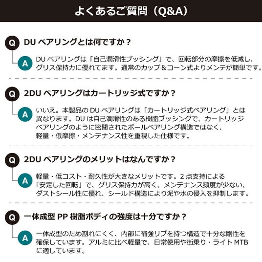 ●泥や埃に強く、お手入れが簡単で長持ちの2DUベアリング