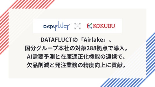株式会社DATAFLUCT(本社所在地:東京都渋谷区、代表取締役CEO:久米村 隼人、以下DATAFLUCT)は、国分グループ本社株式会社(本社所在地:東京都中央区、代表取締役会長兼CEO:國分 勘兵衛)の物流拠点288ヶ所へ「Airlake platform」と「Airlake AI models」によるAI需要予測の導入を完了しました。