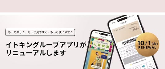 イトキン株式会社(本社:東京都港区/代表取締役社長:前田和久)は、イトキングループが展開するブランドを統合するITOKIN Group公式アプリを2025年10月1日(水)にリニューアルいたします。