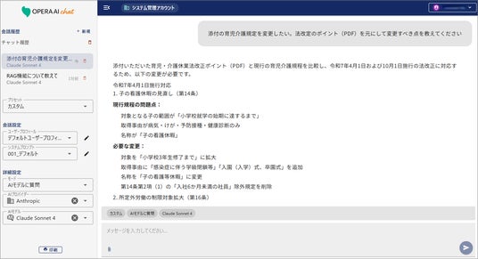 本システムは、社内の知識ベースや外部の情報に瞬時にアクセスできる、セキュアな環境で運用可能なAIチャットシステムです。各部門の業務を支援しながら、組織全体の生産性向上をサポートします。Opera AI Chatでできること: