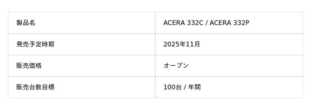 ■ ACERA 332C / ACERA 332P の発売時期、販売目標