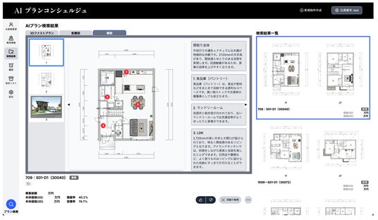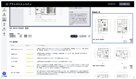 ・お客さまのご要望と、住宅図面を統合的に自動解析して得たプランの特長を踏まえ、検索されたプ