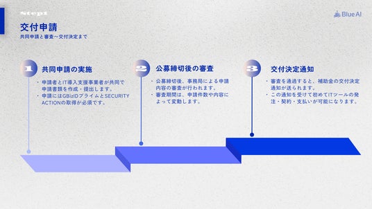 IT導入補助金を活用して「KEIEI-AI」の導入を検討されている企業様は、下記問い合わせページもしくはメール(press@blueai.co.jp)よりお問い合わせください。お問い合わせ(HP)