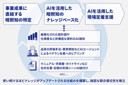 本格化するベテラン世代の定年による大量退職を背景に、ベテラン社員の長年の経験で培われた勘所や職人的なノウハウといった無形資産は、依然として「暗黙知」のまま失われつつあります。