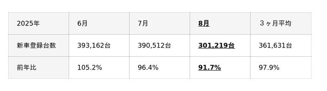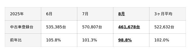 【中古車市場統計レポート(2025年8月)】より抜粋してご案内いたします。