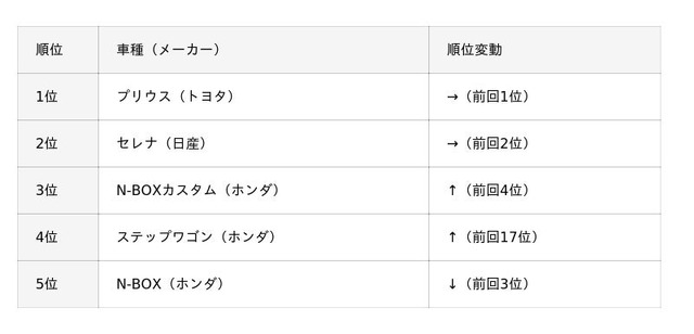 「車選びドットコム」の市場動向から調査した、国産車の2025年8月中古車販売ランキングを紹介します。