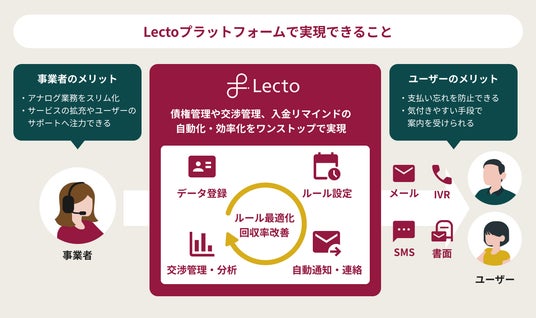 Lecto株式会社(本社:東京都渋谷区、代表取締役社長:小山 裕、以下「Lecto」)は、ライフ&ワークデザイン株式会社(本社:東京都渋谷区、代表取締役:平地 稔、以下「ライフ&ワークデザイン」)が、債権管理および督促・回収業務をデジタル化・自動化する「Lectoプラットフォーム」を導入したことをお知らせいたします。