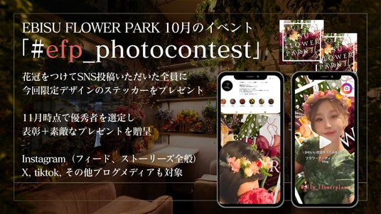 花冠を身につけてSNSに「#efp_photocontest」のタグをつけて投稿いただいた会員様全員に、今回限定デザインのステッカーをプレゼント。さらに11月時点で優秀投稿を選出し、表彰とともに素敵なプレゼントをご用意いたします。