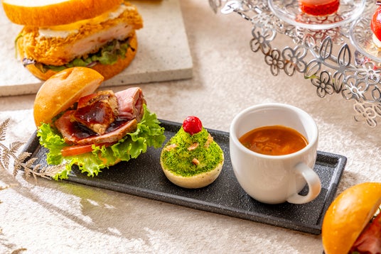 サンドイッチは、いちごやマスカルポーネチーズなどを挟んだコッペパン、ターキーやレタスをあわせたバゲット、大学芋をマヨネーズで合えたサツマイモパンなど、全4種類。ホテルメイドのスコーンは、赤いリボンをあしらった抹茶&ホワイトチョコと、バターがリッチに香るプレーンの2種をご用意。いずれも食べ放題でお楽しみいただけます。