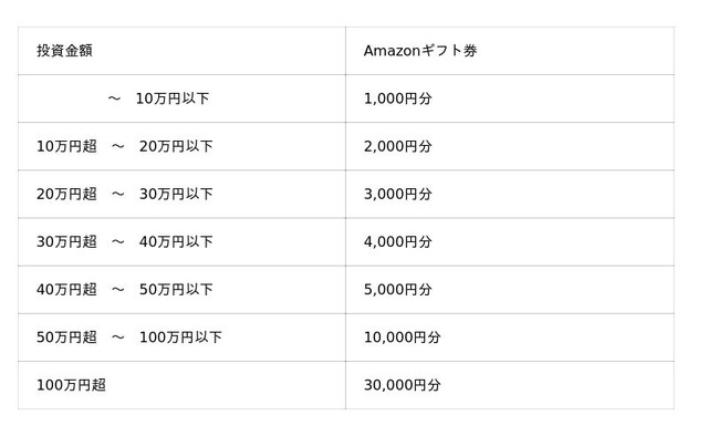 投資金額に応じてAmazonギフト券(eギフト)をプレゼント!