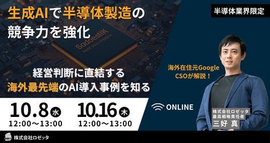 本ウェビナーでは、海外在住・元Google CSOが登壇し、海外半導体企業の最新活用事例をもとに、生産性向上・コスト削減・品質改善に直結する生成AI活用のポイントを徹底解説します。