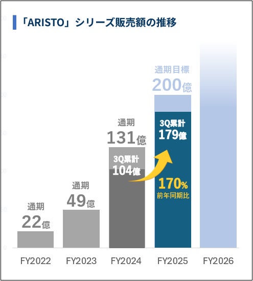 この第三四半期における販売ペースは、「不動産小口化商品『ARISTO』 2030年 年間販売総額600億円へ ~不動産小口化事業の市場環境と競争優位性~」(2025年7月1日発表)における来年度の販売目標である270億円を達成するために必要な四半期ごとの販売ペース(67.5億円/1Q)を上回る好調な結果となりました。