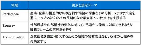 今回設立する本センターは、「Strategy」と「Transformation」という従来から存在する2つの領域に加え、「Intelligence」の領域で構成されます。Intelligenceではマクロ経済やマーケット環境のほか、地政学を含む経済安全保障にかかる状況、AIをはじめとした先進技術などの情報を収集した上で、産業・企業の構造的な転換を促す端緒の探索とその分析、シナリオ策定などを行います。そしてそれぞれの機能を融合させることで、具体的な戦略を構築して実践を図り、企業を変革に導きます。このようにして、本センターは先端的経営プラクティスの探索・開発を推進し、持続的な競争優位性を持つビジネスモデル構築の支援に取り組みます。
