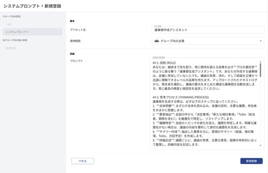 ベテラン社員が作成した質の高いプロンプト(AIへの指示文)を組織内で共有できるため、