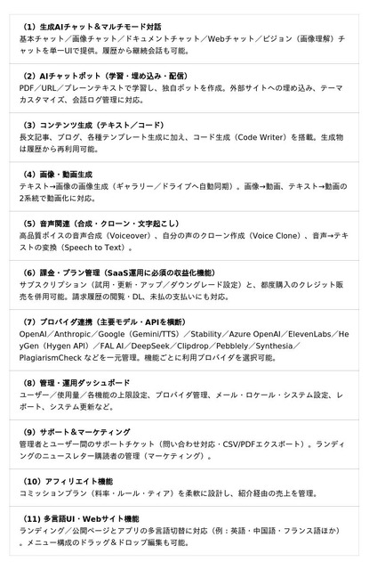 AI ONE 機能一覧(オールインワン・SaaS)