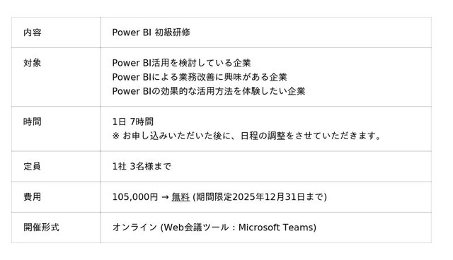 株式会社ニーズウェル(本社:東京都千代田区、代表取締役社長 松岡元)は、Power BIの導入を検討している企業や活用効果を高めたい企業に向けて、2025年10月からPower BIハンズオンセミナーを新たに開催することをお知らせします。