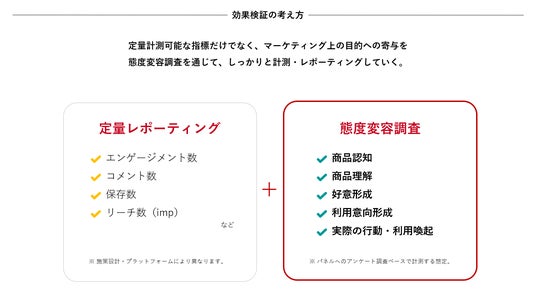 定量的な数値はもちろん、態度変容調査を含めた総合的なレポートで、キャンペーンが与えた影響を可視化します。