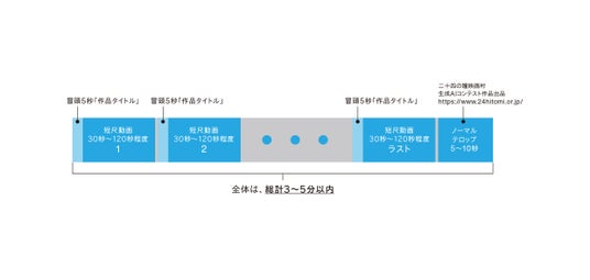 ・短編ドラマ(アニメ)、映像詩、ミュージックビデオ、スティル(静止画)構成等、形式は自由です。ただし、画角はスマートフォンで見やすい縦型とします。