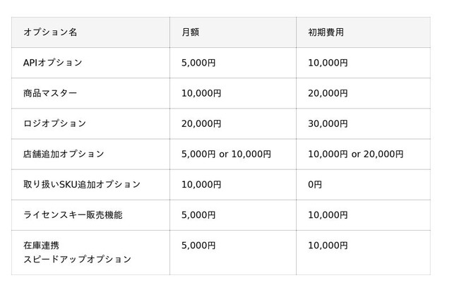 各種オプションの追加、システムで管理する店舗数の追加、上位プランへの変更時に発生する