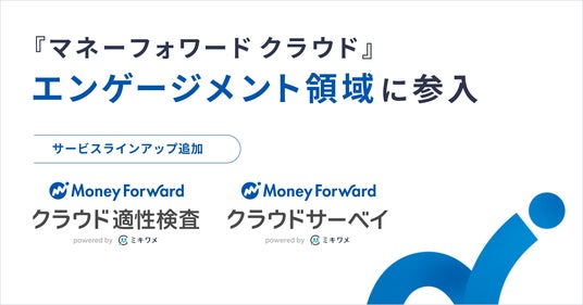 株式会社マネーフォワードは、人事労務領域で新たに従業員エンゲージメント領域に参入し、『マネーフォワード クラウド適性検査 powered by ミキワメ』(以下、『マネーフォワード クラウド適性検査』)、『マネーフォワード クラウドサーベイ powered by ミキワメ』(以下、『マネーフォワード クラウドサーベイ』)の提供を開始します。